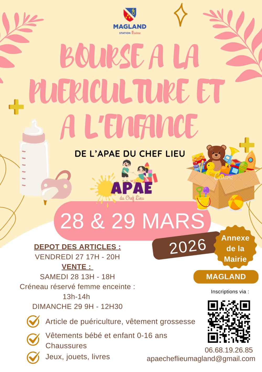 Vous êtes ici : Accueil > Agenda > Bourse à la puériculture et à l’enfance Bourse à la puériculture et à l’enfance Publié : 19 février 2026