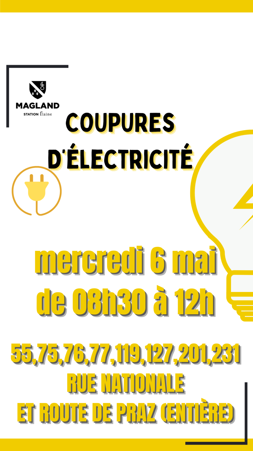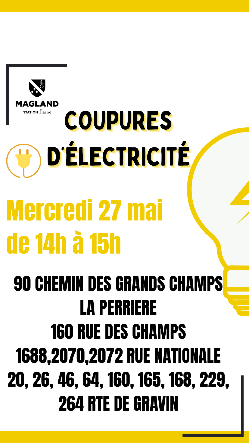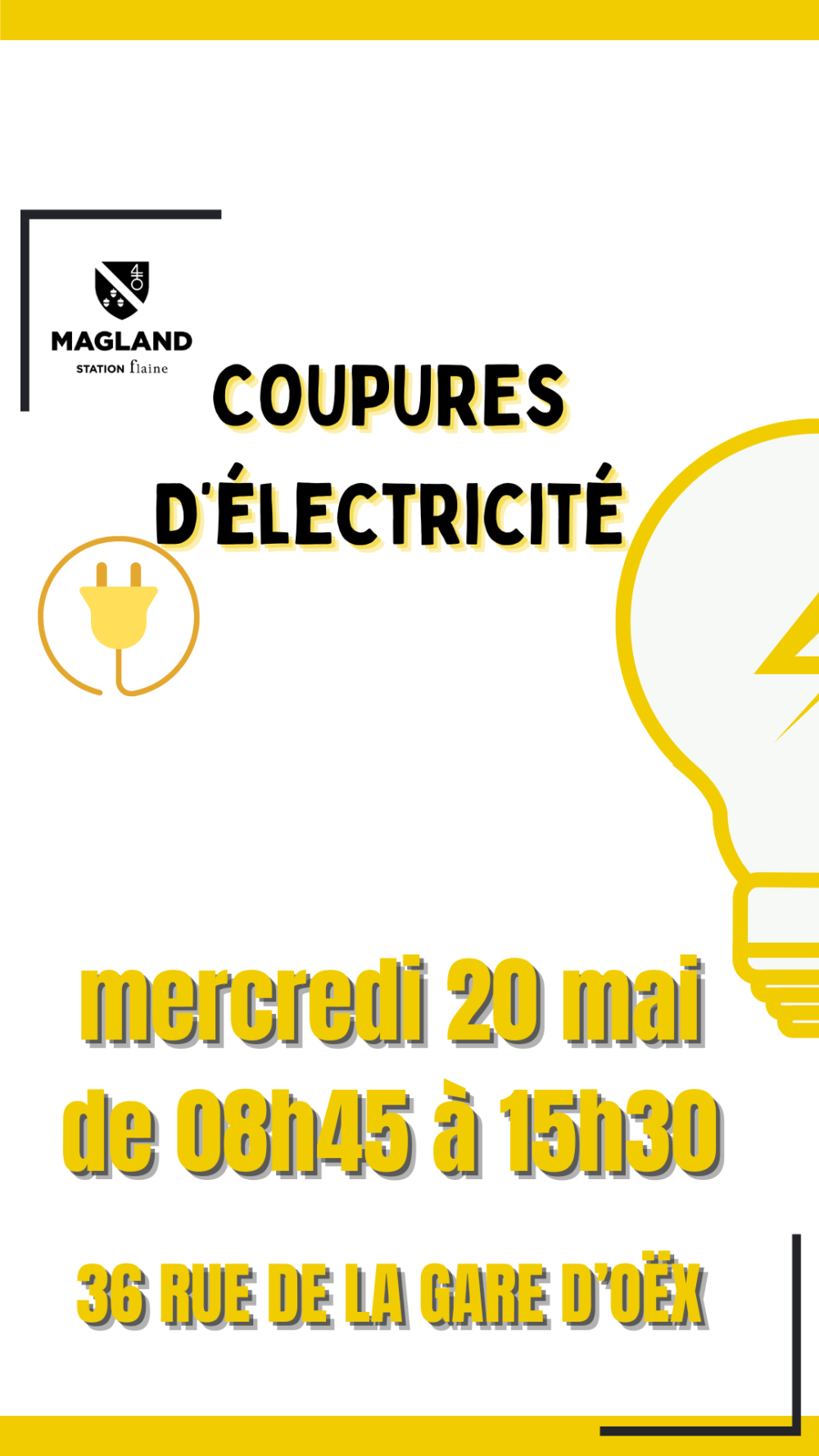 Vous êtes ici : Accueil > Vie pratique > Travaux > Coupures électricité Coupures électricité Publié : 23 avril 2026