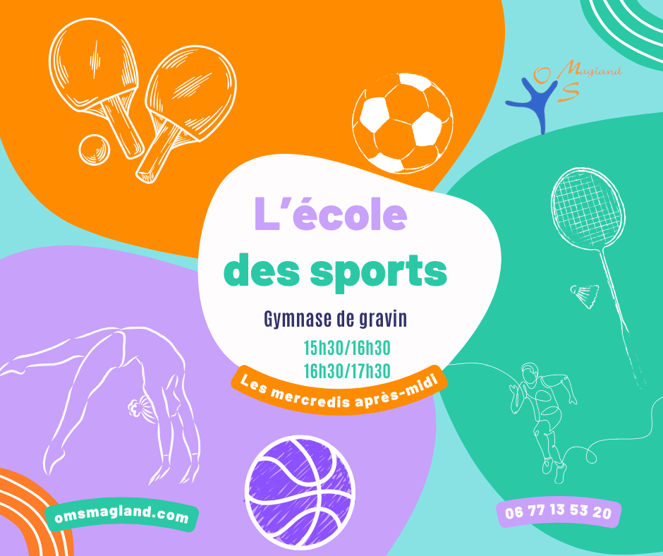 L’objectif est la découverte et l’initiation sportive. Ces activités sont encadrées par une éducatrice sportive diplômée. La pratique de plusieurs disciplines sportives permettra ainsi à l’enfant de s’orienter ultérieurement vers une discipline sportive de son choix : gymnastique, athlétisme, sports collectifs, badminton, tennis de table, etc.