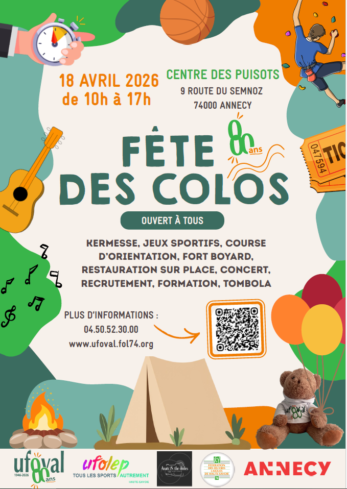Vous êtes ici : Accueil > Agenda > Fête des colos - 80 ans de l’UFOVAL Fête des colos - 80 ans de l’UFOVAL Publié : 9 avril 2026