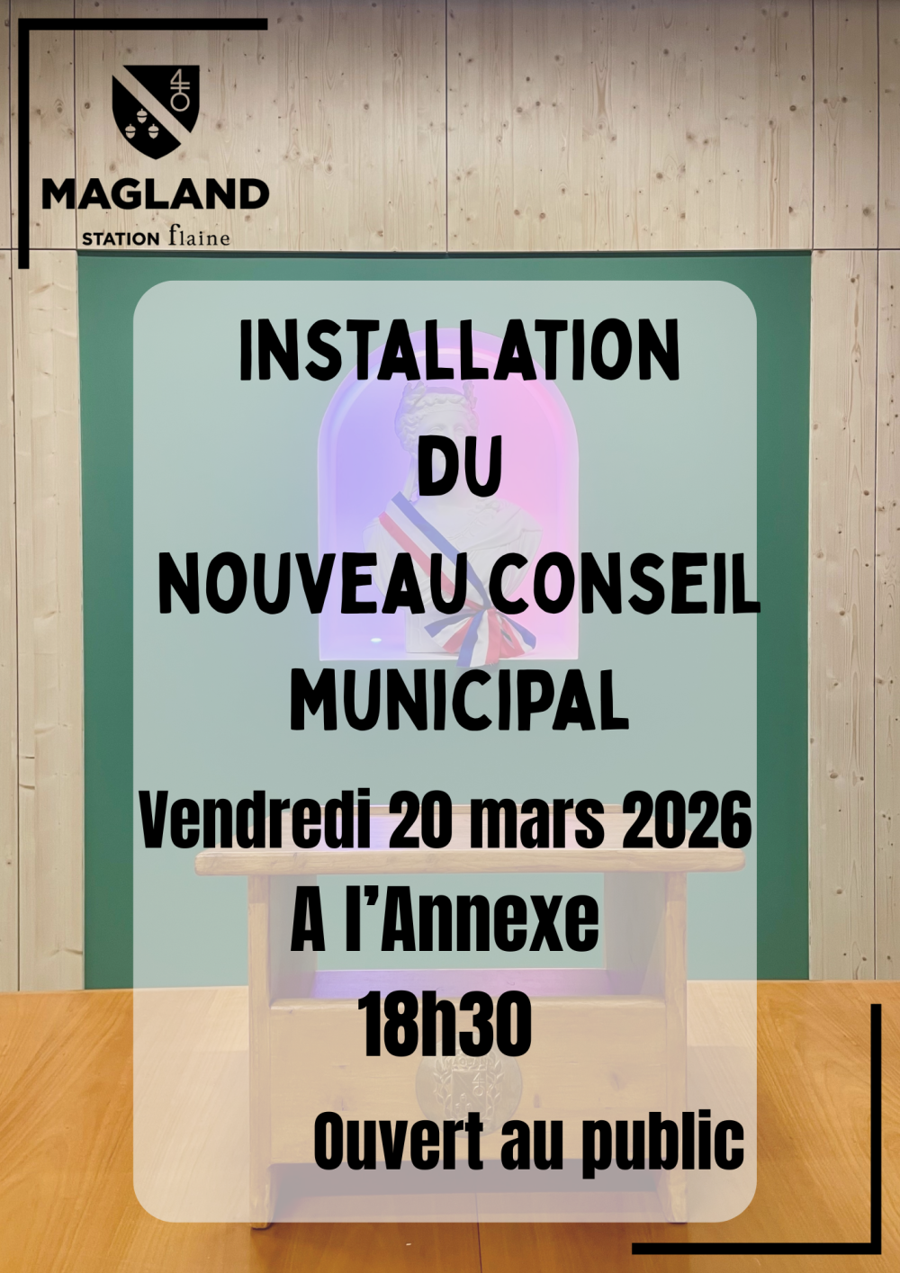 Vous êtes ici : Accueil > Agenda > Installation nouveau conseil municipal Installation nouveau conseil municipal Publié : 17 mars 2026
